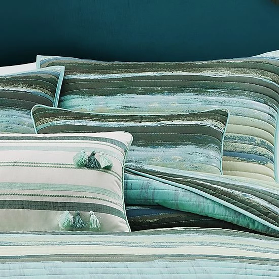 This quilted boudoir pillow from Five Queens Court uses beautiful top of bed print custom cut to highlight details.