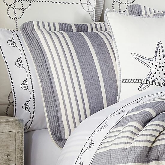 - Finished off with a cotton twist cord to enhance the coastal theme, this oversized comforter is warm and cozy for a brisk ocean breeze feel.