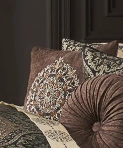 Five Queens Court Maryanne Beige 16″ Square Decorative Throw Pillow