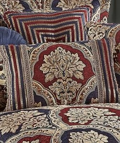 Five Queens Court Middleton Red 18″ Square Embellished Decorative Throw Pillow